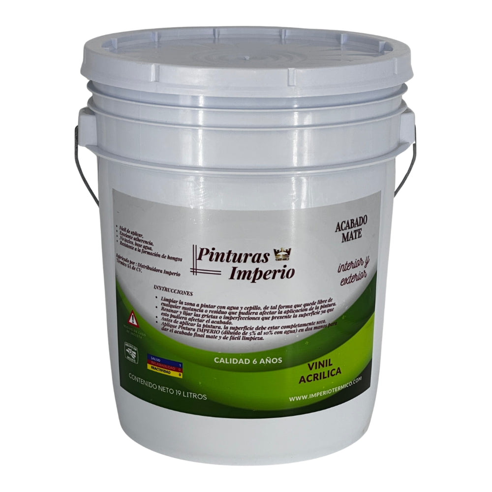 La pintura 6 años mate para interiores y exteriores blanca 19 litros a base de agua con resinas acrílicas, ofrece un acabado vibrante, de colores intensos y duraderos. Es fácil de aplicar, seca rápidamente y tiene una excelente adherencia a una amplia variedad de superficies, como madera, tela y más. Perfectas para trabajos en interiores y exteriores, estas pinturas permiten crear espacios llenos de color con facilidad y sin esfuerzo, ofreciendo una solución ideal para constructores, contratistas, desarrolladores y remodeladores que buscan rendimiento, facilidad de aplicación y una estética limpia y profesional.